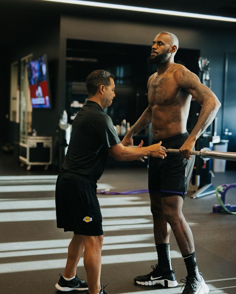 他说:“突然,有人拍了拍我的肩膀。我转过身,看到一个男人,他没我高,但身材极其健硕。他说,‘Skip,我是迈克-曼卡斯。’我当时就懵了,心想‘什么?’我没想到会在这里遇到他。我很清楚他是谁,勒布朗的训练师。我不知道他们合作多久了,反正从迈阿密时期就开始了。”