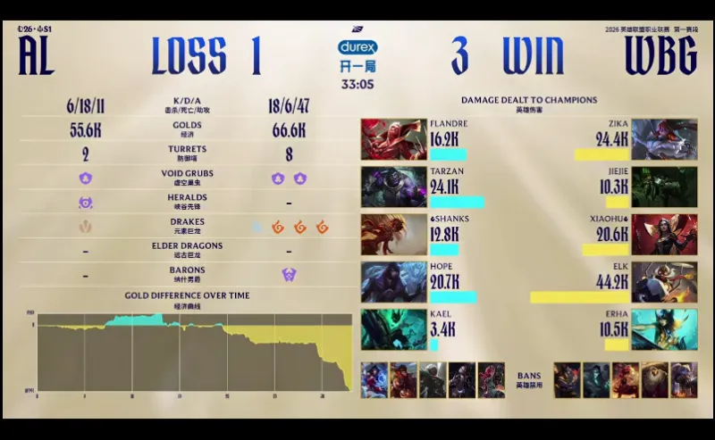12分钟,掀桌!WBG下路果断出手打出0换3随后拿龙
